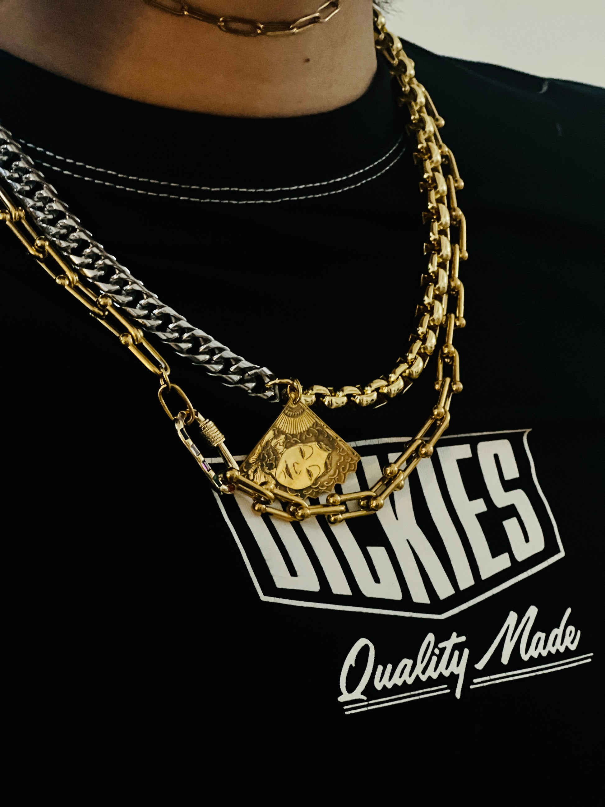 Chunky stainless steel chains ⛓️ with silver pendant with special engraving full length of pendant 3,6 cm and full length of chains 42 cm
